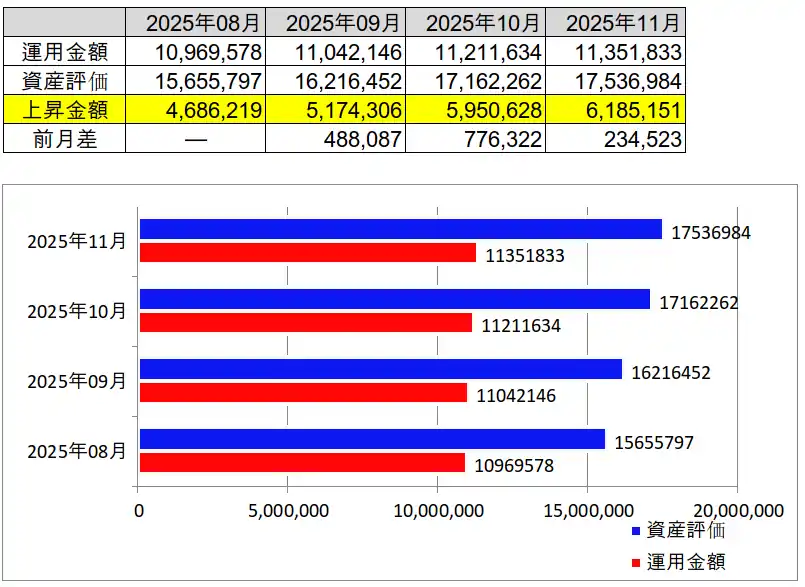 株やFXなどのハイリスク・ハイリターンは行わず、各投資信託に月数万円ずつ積立てた結果となっています。